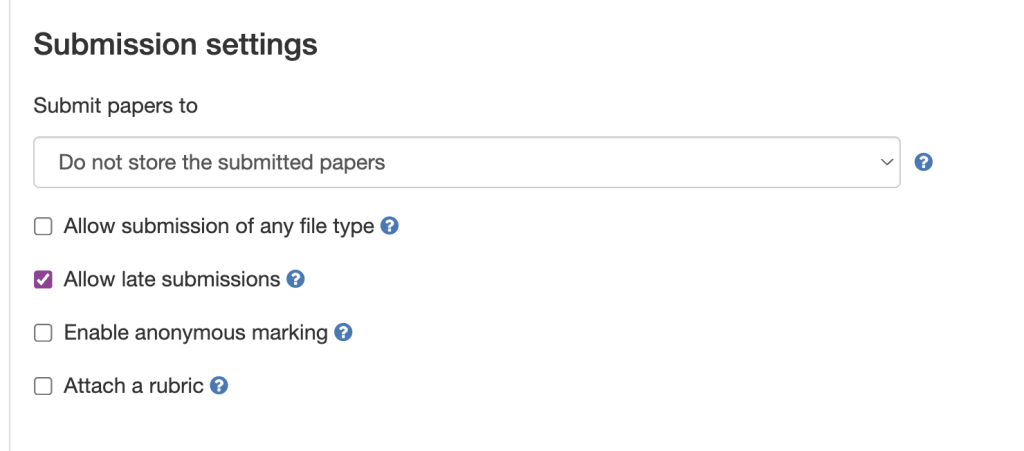 To use anonymous marking, you must enable it before any student submits. Once a single paper is submitted, this setting is locked and cannot be turned on for that assignment.