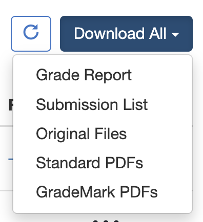 • Grademark PDFs: Creates PDF files from the original submissions, adds the Grademark report to the PDF, and compresses all the files in a ZIP file for download.